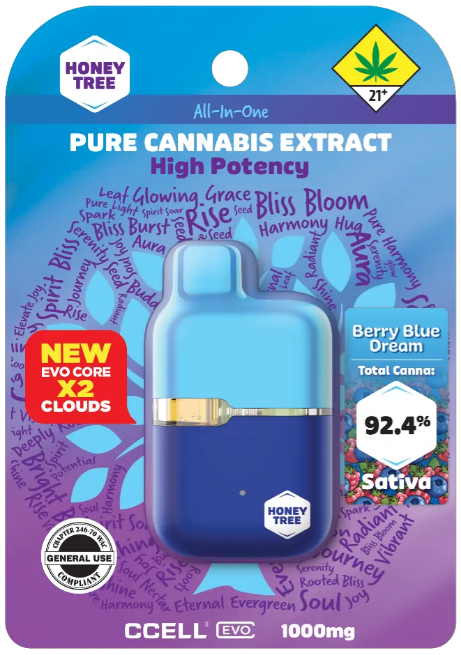 Experience the bold, fun, and flavorful Honey Tree line with our new flavored all-in-one vape and 510-thread cartridge. Powered by advanced CCELL® EVO technology, the all-in-one delivers smooth, clog-free hits with bigger clouds and enhanced taste. Crafted with high-potency, pure cannabis and infused with natural terpenes, each puff offers loud flavor and a vibrant experience wherever life takes you.