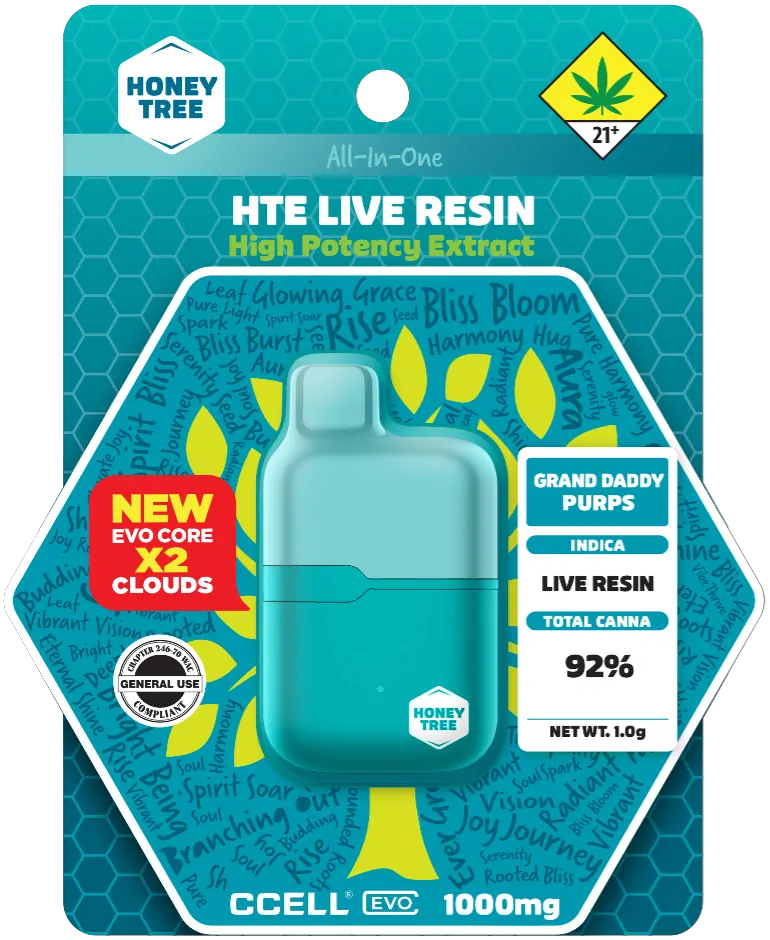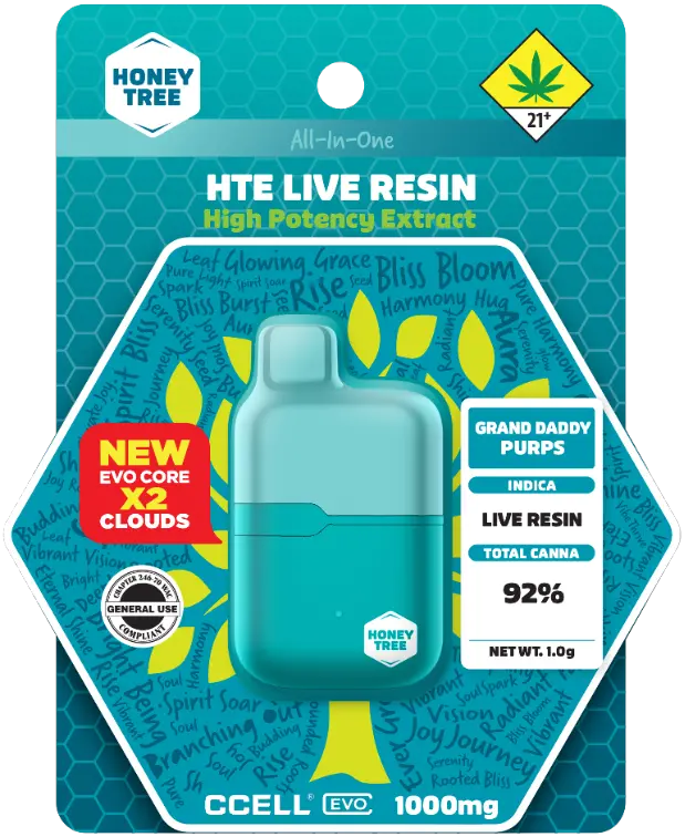Experience premium quality at a bold price with Honey Tree HTE live resin vapes by Bodhi Brands. Available in both all-in-one and 510-thread cartridge, these vapes are crafted with high terpene extract (HTE) live resin, offering high potency and full-spectrum terpenes. The all-in-one, powered by advanced CCELL® EVO technology, delivers smooth, clog-free hits, enhanced flavor, and bigger clouds in a sleek, portable design.